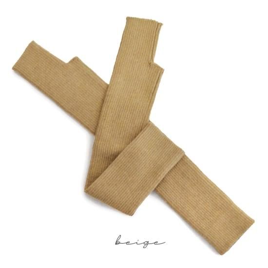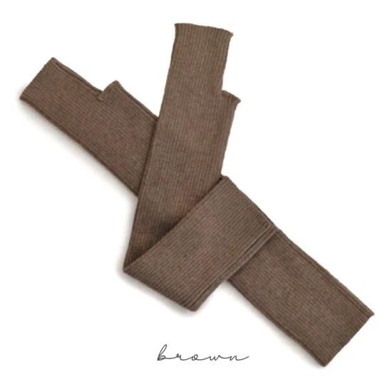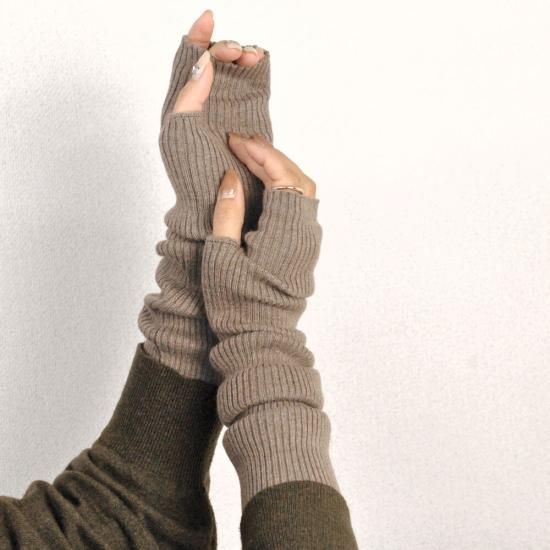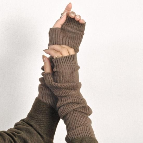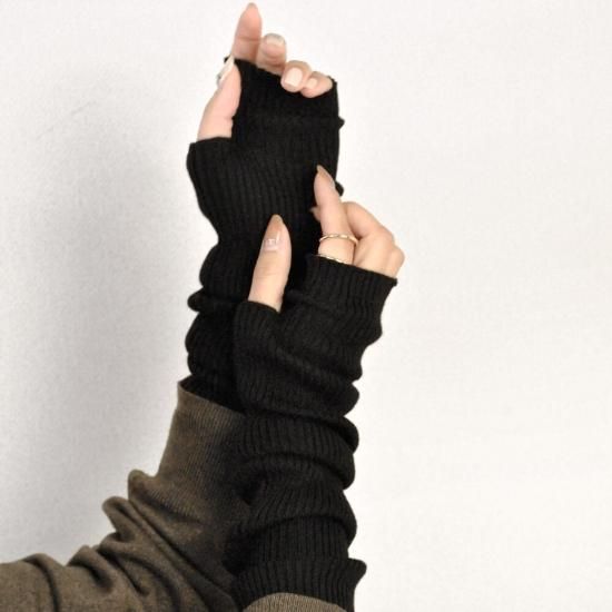 伸縮性の高い人気のリブ編みニットは、柔らかみと肌触りも非常に良い仕上がりで、親指穴付きのフィンガーレスデザインも嬉しいポイントです◎