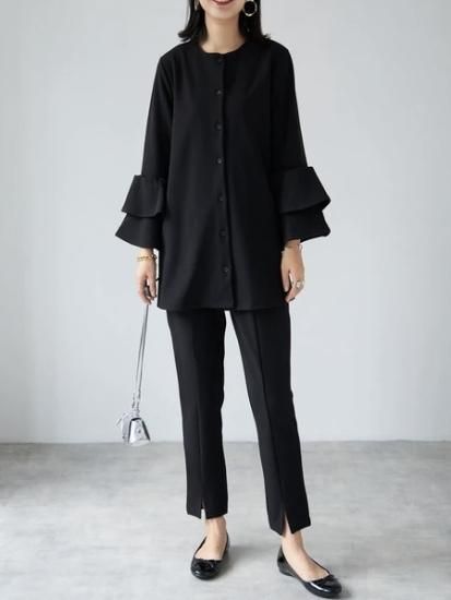 ・少しの前スリットが足元を女性らしく品よくコーデを仕上げて◎