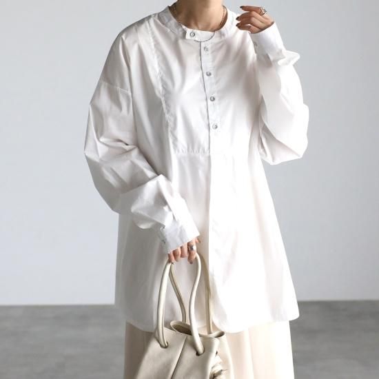 ベーシックなカラーなので、カラーパンツや総柄のパンツ、スカートとも合わせやすい1枚です。