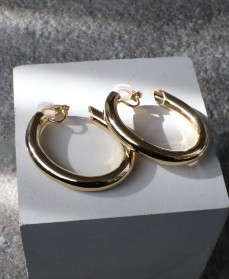シンプルながら存在感があり、耳周りを華やかに演出するフープイヤリング。