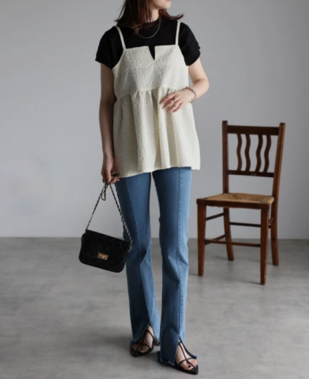 フロントは裾スリットで、トレンドライクなデザインです。