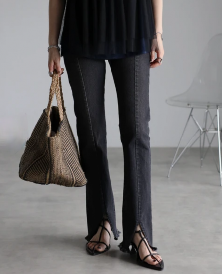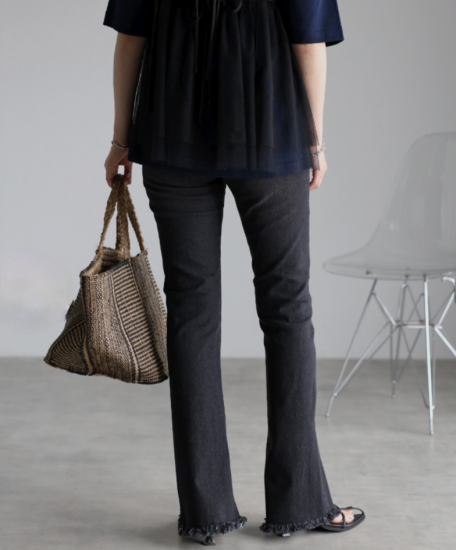 どんなトップスとも相性がよく、裾のフリンジもトレンドライクなディテール。