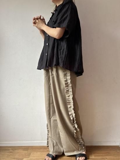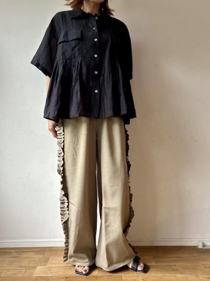 ウエスト部分はゴム、ワイドパンツで着脱も着心地も楽ちんですがしっかりした生地感で日常使いにはもちろん、きちんとしたコーデにも◯