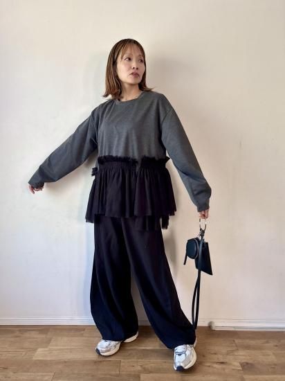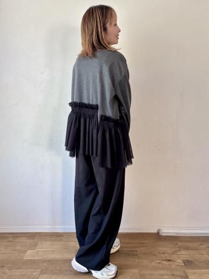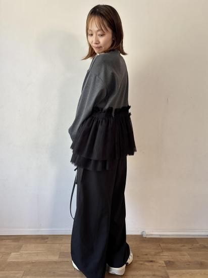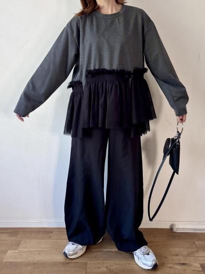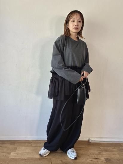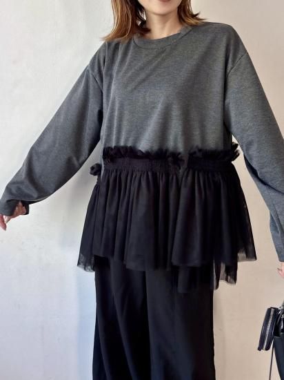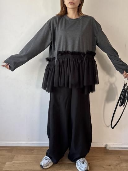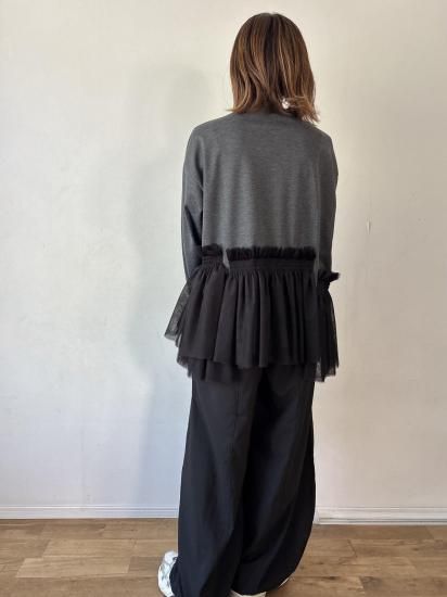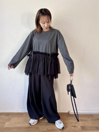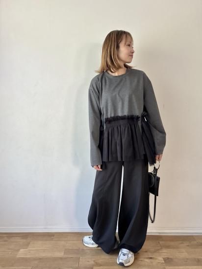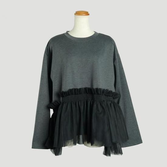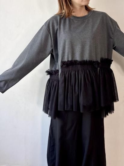 ウエスト部分にあしらわれたチュールギャザーが、フェミニンで華やかな印象をプラスするカットソー。