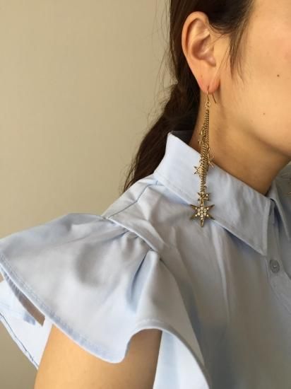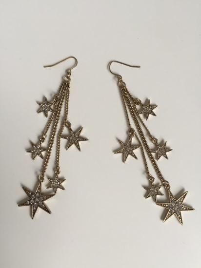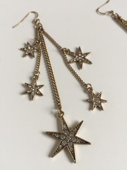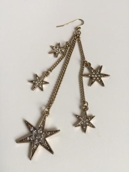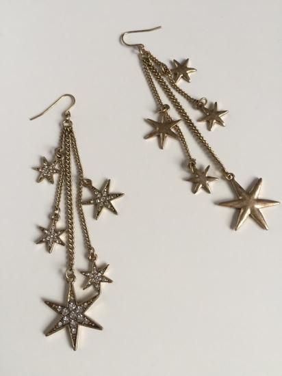 動くたびにゆらゆら揺れるスターが流れ星のようなデザインに。アンティークゴールドカラーの上品ムードで、